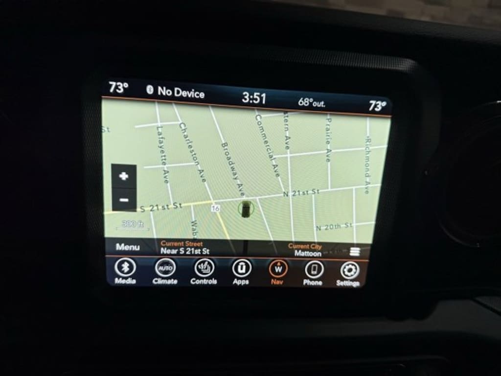 8.4" Radio & Premium Audio Group (Alpine Premium Audio System, Auto-Dimming Rear-View Mirror, and Emergency/Assistance Call), Altitude Package, Cold Weather Group (Heated Front Seats and Heated Steering Wheel), Dual Door Group w/Premium Uppers (Front 1-Touch Down Power Windows, Half Doors w/Uppers, Power Heated Mirrors, Remote Keyless Entry, and Speed Sensitive Power Locks), Quick Order Package 22L Altitude (Automatic Headlamps, Black 3-Piece Hard Top, Black Interior Accents, Black Trail Rated Badge, Body Color Grille w/Gloss Black Rings, Deep Tint Sunscreen Windows, Freedom Panel Storage Bag, Heavy Duty Suspension w/Gas Shocks, Leather Wrapped Steering Wheel, Matte Black Jeep Badge, MOPAR Hardtop Headliner, No Soft Top, Rear Window Defroster, Rear Window Wiper/Washer, Security Alarm, Sun Visors w/Illuminated Vanity Mirrors, Wheels: 18" x 7.5" Gloss Black Aluminum, Wizard Black Instrument Panel Bezels, and Wrangler Decal), Safety Group (Blind Spot & Cross Path Detection, Injection Molded Black Rear Bumper, LED Taillamps, and ParkSense Rear Park Assist System), Technology Group (7.0" Touchscreen Display, Air Conditioning w/Auto Temperature Control, Air Filtering, Apple CarPlay, Cluster 7.0" TFT Color Display, For More Info, Call 800-643-2112, Google Android Auto, GPS Antenna Input, Integrated Center Stack Radio, Radio: Uconnect 4 w/7" Display, SiriusXM Radio Service, SiriusXM Satellite Radio, and USB Host Flip), 3.45 Rear Axle Ratio, 4-Wheel Disc Brakes, 8 Speakers, ABS brakes, Air Conditioning, AM/FM radio, Aux Battery, Brake assist, Cloth Low-Back Bucket Seats, Compass, Continental TPM Sensor (DISC), Delay-off headlights, Driver door bin, Driver vanity mirror, Dual front impact airbags, Dual front side impact airbags, Electronic Stability Control, Front anti-roll bar, Front Bucket Seats, Front Center Armrest w/Storage, Front fog lights, Front reading lights, Integrated roll-over protection, Low tire pressure warning, Manufacturer's Statement of Origin, MOPAR All-Weather Floor Mats (DISC), Non-Lock Fuel Cap w/o Discriminator, Normal Duty Suspension, Occupant sensing airbag, Outside temperature display, ParkView Rear Back-Up Camera, Passenger door bin, Passenger vanity mirror, Power steering, Radio data system, Radio: Uconnect 3 w/5" Display, Radio: Uconnect 4C Nav w/8.4" Display (DISC), Rear anti-roll bar, Rear reading lights, Remote Proximity Keyless Entry, Selec-Speed Control, Side Steps, Speed control, Split folding rear seat, Steering wheel mounted audio controls, Stop-Start Dual Battery System, Tachometer, Telescoping steering wheel, Tilt steering wheel, Traction control, Trip computer, Variably intermittent wipers, and Wheels: 17" x 7.5" Black Steel Styled.