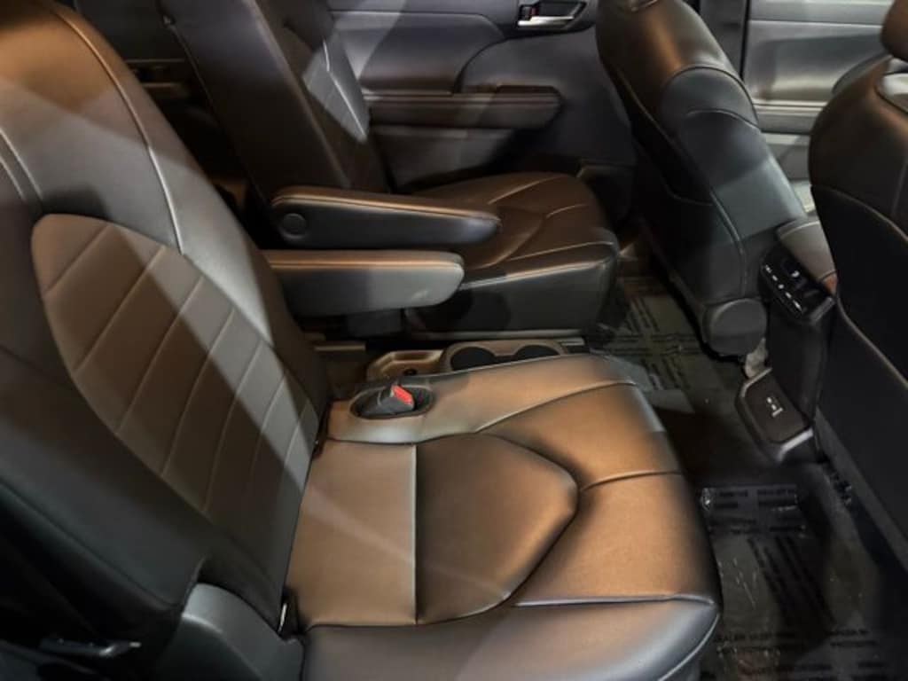 3.329 Axle Ratio, 3rd row seats: split-bench, 4-Wheel Disc Brakes, 6 Speakers, ABS brakes, Air Conditioning, Alloy wheels, AM/FM radio: SiriusXM, Apple CarPlay/Android Auto, Auto High-beam Headlights, Auto-dimming Rear-View mirror, Automatic temperature control, Brake assist, Bumpers: body-color, Delay-off headlights, Driver door bin, Driver vanity mirror, Dual front impact airbags, Dual front side impact airbags, Electronic Stability Control, Emergency communication system: Safety Connect (up to 10-year trial subscription), Exterior Parking Camera Rear, Four wheel independent suspension, Front anti-roll bar, Front Bucket Seats, Front Center Armrest, Front dual zone A/C, Front fog lights, Front reading lights, Fully automatic headlights, Garage door transmitter: HomeLink, Heated door mirrors, Heated Front Bucket Seats, Heated front seats, Illuminated entry, Knee airbag, Leather Shift Knob, Leather steering wheel, Low tire pressure warning, Occupant sensing airbag, Outside temperature display, Overhead airbag, Overhead console, Panic alarm, Passenger door bin, Passenger vanity mirror, Power door mirrors, Power driver seat, Power Liftgate, Power moonroof, Power passenger seat, Power steering, Power windows, Radio: 8" Toyota Audio Multimedia, Rear air conditioning, Rear anti-roll bar, Rear reading lights, Rear window defroster, Rear window wiper, Reclining 3rd row seat, Remote keyless entry, Security system, SofTex Seat Trim, Speed control, Speed-sensing steering, Split folding rear seat, Spoiler, Steering wheel mounted audio controls, Tachometer, Telescoping steering wheel, Tilt steering wheel, Traction control, Trip computer, Turn signal indicator mirrors, Variably intermittent wipers, and Wheels: 18" Machined-Finish Alloy.